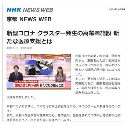 - 新型コロナ クラスター発生の高齢者施設 新たな医療支援とは2022年10月にNHKで放送されました。